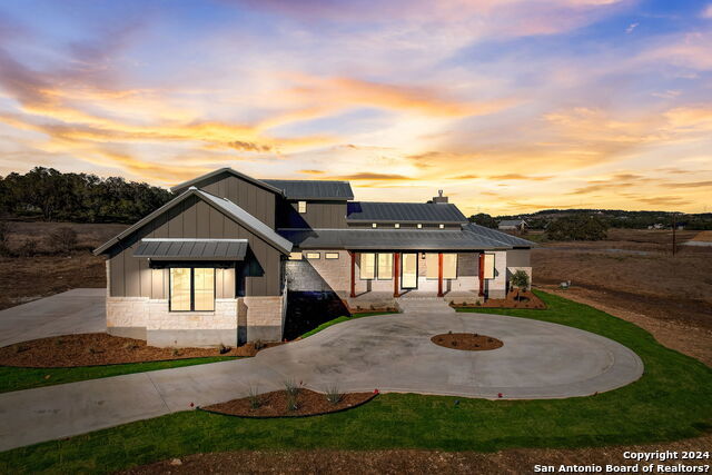 Rented now but available for sale and owner finance- please call to inquire. Absolutely magnificent modern farmhouse sitting on a private 1+ acre lot in beautiful Belle Oaks. Award-winning 2023 Parade of Homes builder and architect! Proudly designed to be Your Home that has it all: luxurious, spacious, comfortable, and beautiful with superior construction and craftsmanship. Home located in front of a private 20+ acre ranch and also surrounded by 5 acres of open space land for the ultimate in privacy and views. The grand wrought iron pivot door is flanked by copper-like natural gas lanterns with herringbone design brick floors of the front patio which continue into the entry hall that open into a magnificent great room with -the heart of a home- stone fireplace from floor to ceiling and a mantel made out of a fallen pecan tree...quality is in the details. Dream Kitchen features custom cabinetry, a full butler's pantry, additional fridge space, and a luxurious Dacor appliance package. Separate breakfast nook with natural light and easy access to patio. Generous covered back patio with a full outdoor kitchen and patio fireplace-perfect for enjoyment. The main floor master suite has its own private patio with its own wood burning fireplace, his and her custom closets, private gym, and its own washer and dryer. European white oak wood floors thru out the entire first and second floor. Large guest suite and separate office located on the main floor. Additional 3 bedrooms and 2 bathrooms, as well as a media/game room are located on 2nd floor. Large utility/mud room off the oversized 3 car garage with insulated glass and aluminum garage doors. Unsurpassed views, well-thought floor plan, generous luminous spaces thru out, top finishes and craftsmanship elevate this modern farmhouse for the ultimate hill country home.