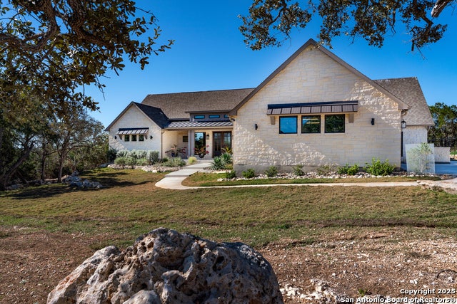 Sellers are offering a $25,000 BUYER INCENTIVE, giving you the flexibility to apply it toward closing costs, rate buy-downs, or other expenses of your choice. Nestled within the prestigious gated community of Serenity Oaks in the scenic Texas Hill Country, this custom-built estate presents a rare opportunity for luxurious and versatile living. Spanning a beautifully landscaped 1.214-acre lot, the property offers 3,961 square feet of meticulously designed living space across a main residence and a private guest house.The Main Residence: A Haven of Modern Comfort (2,921 Sq Ft) completed in 2023, boasts 4 spacious bedrooms, 3.5 bathrooms, a dedicated home office, and an oversized 3-car garage. An open-concept floor plan defines the interior, featuring luxury vinyl plank flooring throughout, soaring ceilings, and striking exposed wood beams. Convenience is elevated with remote-controlled window shades and a suite of modern amenities for energy efficiency and comfort, including a 500-gallon propane tank, a Generac whole-home backup generator, a hybrid water heater, and dual-zone HVAC with Ecobee Smart Thermostats. The heart of this home is its chef-inspired kitchen, outfitted with custom Michael Edwards cabinetry, gleaming quartz countertops, and KitchenAid stainless steel appliances, including built-in double ovens, a gas cooktop, microwave, and a dedicated ice maker. A large walk-through pantry with open shelving provides both practicality and contemporary style. Seamlessly flowing from the kitchen are the spacious dining area and living room, perfect for entertaining and family gatherings. For those who work or study from home, the private office offers two custom-built workstations. The primary suite and guest bedrooms are generously sized, ensuring comfort and privacy for all. The Guest House: Independent Luxury (1,040 Sq Ft) completed in January 2025 adding unparalleled flexibility to the estate and features its own private entrance. This standalone dwelling includes 1 bedroom, 1.5 bathrooms, a full kitchen, a spacious living area, a laundry room, and a walk-in master closet. The finishes and craftsmanship within the guest house mirror the main home's exquisite quality, featuring Kent Moore cabinetry, GE Cafe appliances, a tankless gas water heater, water softener, and a 250-gallon propane tank. Designed with inclusivity in mind, the master bathroom is accessibility/adaptive-friendly, ensuring comfort and ease of use for all guests or aging family members. A private 10x12 wooden deck offers a serene spot to unwind and take in the surrounding Hill Country views. Outdoor Oasis and Prime Location: The backyard is a private oasis designed for both relaxation and entertainment. A stunning lap pool with heating, cooling, LED lighting, and smartphone automation creates a resort-style experience. The expansive patio features a full outdoor kitchen, complete with a gas grill, Kamado grill, sink, refrigerator, and a large island, ideal for prepping and serving. A built-in stone fireplace provides warmth and ambiance on cool evenings, making this space enjoyable year-round. The property also offers ample parking and space for a boat, RV, or other recreational vehicles, with proximity to Canyon Lake making water activities easily accessible. Full professional landscaping, an irrigation system, and a modern keyless entry system enhance the home's convenience and security. This exceptional estate offers a rare blend of privacy, luxury, functionality, perfectly suited for those seeking peaceful Hill Country living with convenient access to nearby towns, cities, and top-tier attractions. Serenity Oaks offers exclusive community amenities, including a private river park with direct entry to the Guadalupe River. The community also features a gated entry, a Junior Olympic swimming pool, access to an 18-hole golf course (Rebecca Creek Golf Course), a playground, and a basketball court.