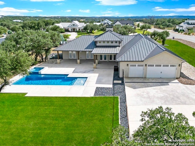 NOW OFFERED AT AN INCREDIBLE NEW PRICE OF $1,095,000, THIS LUXURY HOME WITH A HEATED SALTWATER POOL AND SPA IS READY FOR ITS NEXT OWNER. This Parade of Homes custom one story estate sits on a full acre corner lot in the prestigious gated community of Belle Oaks Ranch. Designed for those who appreciate quality, elegance, and comfort, the home features a dramatic 16 foot ceiling, double sided stone fireplace, and an open concept living area perfect for entertaining. The chef's kitchen showcases Michael Edwards custom cabinetry, quartz countertops, a premium KitchenAid appliance suite, Sil granite sink, touchless faucet, reverse osmosis filtration, and a whole home water softener system. The spacious primary suite offers French doors leading to the backyard retreat and a boutique style custom closet. Additional highlights include a guest suite, Jack and Jill bedrooms, a dedicated office, and a flexible bonus room ideal for fitness, media, or creative use. Smart home features include WiFi thermostats, automated blinds, hardwired security with cameras, mesh WiFi, and remote controlled lighting. Outside, the heated saltwater pool and spa are complemented by ambient lighting, app controlled automation, and a smart septic drip system. The oversized three car garage offers polyaspartic floors, built in racks, a utility sink, and extended parking. Belle Oaks Ranch residents enjoy premium community amenities including a clubhouse, resort style pool, tennis, pickleball, basketball, and walking trails. Schedule your private tour today and make this Hill Country masterpiece yours before it's gone!