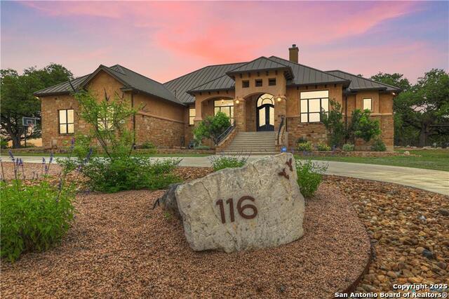 Step into luxury with this stunning Jimmy Jacobs custom-built home, perfectly positioned on a wide 1.12-acre lot in the prestigious gated community of Ensenada Shores on Canyon Lake. With over 200 feet of frontage, this property offers rare seclusion, surrounded by more than a dozen centuries-old live oak trees and enhanced by Texas Hill Country Views. Fully plumbed for propane. There is a beautiful Lakeview from back left of the lot. A sweeping circular driveway welcomes you with beautiful low-maintenance xeriscape landscaping in the front yard-designed for both curb appeal and water-wise sustainability. Step into this stylish 4-bed, 3-bath home with a dedicated office, media lounge, and game room-perfect for work or play! Craving extra space? Easily convert the media and game rooms into a 4th bedroom or luxe second suite with private patio access-great for morning coffee or effortless indoor-outdoor living. The open-concept floor plan showcases hand-scraped Alder wood floors and rich custom Alder cabinetry throughout. The chef's kitchen is an entertainer's dream, offering a massive island, stainless steel appliances, electric cooktop, and custom wood shutters-all combining functionality with timeless style. The oversized, climate-controlled (mini split) 3-car garage is a standout feature, equipped with built-in wood shelving, a workbench, and a mechanical lift that allows for effortless storage of tools and supplies directly from your truck bed into the expansive upper attic storage, keeping everything clean and out of sight. Enjoy the outdoors year-round on 850 sqft of patio space-ideal for dining al fresco, entertaining guests, or simply taking in the serene Texas Hill Country landscape. The home's 100% masonry sandstone exterior and standing seam metal roof ensure long-lasting beauty and structural integrity. Located in the sought-after South Lake area, with a private exit gate to Oblate Dr, this home offers both exclusivity and convenience-close to shopping, dining, and all that Canyon Lake has to offer. Some pictures have been virtually staged. There is no pool or furniture.