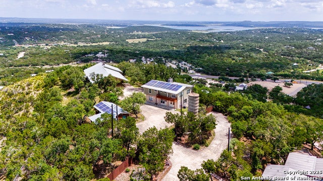 Secluded, private homes with stunning views of Canyon Lake, the hill country, and the city of Startzville. A little over an acre of the property is shared by 3 different residences that sit on a hill top with panoramic views of the southside of Canyon Lake. Located at the end of a private road, you drive in through your private gated entry. The main residence exterior/interior walls are made of solid stone/rock. The floors and ceilings are made of pine. It has 2 large bedrooms with ensuites and walk-in closets, a large kitchen and open living area with a rock fireplace. From anywhere in the house, the panoramic views are endless. With a large cover carport, and 2 separate patios off the living room, you can enjoy the peace of the hill country with views of Canyon Lake. The 2-story home accommodates guests with over 3 beds and 4 full baths and large living room with a rock fire place. The deck along the entire back side of the 2nd story looks out towards Canyon Lake and the hill country with exceptional views. On the lower level is another deck and a small room once used as a sewing room. The workshop is located on the bottom floor with the well, the water softener, solar panels and laundry hookups in a converted garage area. Plenty of storage for all your outdoor essentials. The cabin or casita is 1 bedroom, 1 bath, with a large room for gathering and another area for eating, a small countertop space with a sink and front porch that overlooks the city of Startzville. The area between the homes is concrete slab with plenty of room for lake toys, cars, and whatever you would want it for. All of this would be behind the automatic gate for security and privacy.