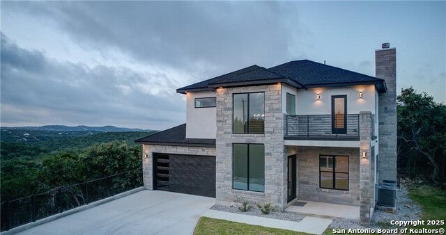 Stunning 3 bedroom, 2.5 bath home with gorgeous Hill Country views!! Sits on a 1 acre lot in the gated community of The Legends at Rancho Del Lago. This property offers tons of large expansive windows, allowing lots of natural light. You'll love the cast iron front door, designer railings throughout the home and the beautiful wood burning fireplace. Kitchen is equipped with gas range, a built in refrigerator and has large island with granite countertop. Modern touches all throughout the home, exquisite primary bathroom with large walk in shower and freestanding tub. Private balcony off of the primary bedroom and oversized covered patio, with large walk in storage underneath, off of the kitchen, perfect for entertaining. Only minutes from Canyon Lake!!