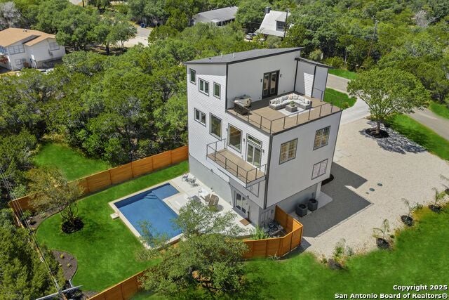 Newly reconstructed and reimagined for lake life luxury, this four level showpiece delivers panoramic Canyon Lake views from multiple upper decks, including a dramatic rooftop terrace, plus a private pool for effortless entertaining. A residential elevator glides to every level of the 4,250 square foot layout, centered around an open, light filled main floor with an island kitchen, walk in pantry, and generous living and dining spaces that spill outdoors. The flexible plan offers 4 bedrooms, 3 full and 2 half baths, an upper level primary retreat with spa style bath, and bonus spaces for media, work, or guests. Outside, enjoy an outdoor kitchen, sun decks with 270 vistas, and a fenced yard on nearly half an acre corner lot on Canyon Lake's sought after south side just moments to marinas, parks, and lake fun. Purpose built for lock and leave ease with modern systems and thoughtful storage throughout, this is Hill Country living at its most elevated.