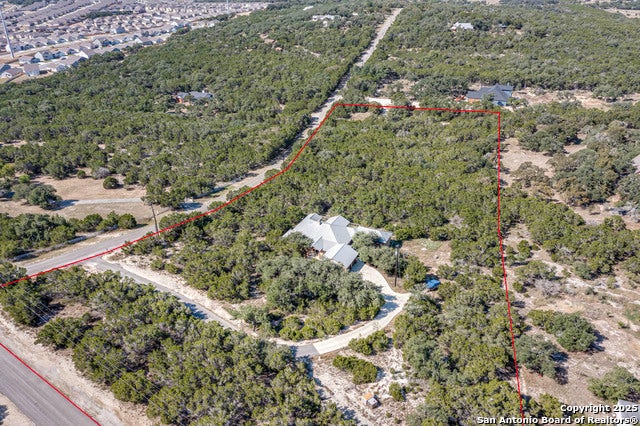 Hill Country Majesty in Bulverde, TX - 5.354 Acres of Secluded Luxury with Unforgettable Views! Welcome to a rare blend of authentic Hill Country charm and refined luxury, nestled on five private, view-filled acres in the heart of Bulverde, TX. Surrounded by nature in its raw and untouched beauty, this estate offers the peace and privacy of country living-just minutes from HEB, top-rated Comal ISD schools, and quick access to the Hwy 281/Hwy 46 corridor. From the moment you arrive, the architectural elegance of this stone and stucco home-capped with a standing seam metal roof-sets the tone. Inside, the craftsmanship is undeniable: vaulted ceilings with real wood beams, solid natural wood trim, doors, and window sills, and stained concrete floors create a warm, grounded aesthetic that reflects the soul of Texas. The open-concept floorplan is anchored by a stunning stone fireplace, while massive picture windows flood the space with light and deliver panoramic Hill Country views in every direction. At the heart of the home, a gourmet kitchen awaits: custom knotty alder cabinetry, high-end KitchenAid appliances, double ovens, a 6-burner gas range with griddle, and elegant pendant lighting make this both a chef's dream and an entertainer's delight. The primary suite is a tranquil retreat, echoing the same high-end finish-out with dual vanities, multiple shower heads, a walk-in shower, and a spacious closet with built-ins. With 5 bedrooms, 3.5 bathrooms, a Jack & Jill setup, and a dedicated study with barn-style door, the home is both spacious and thoughtful in layout. An additional rear-entry office or flex space, accessible exclusively from the Texas-sized back patio, provides the ideal work-from-home setup or private studio. Outdoors, the oversized covered patio-with its soaring cedar-lined ceilings-offers the perfect perch for watching Hill Country sunsets, enjoying evening breezes, or hosting unforgettable gatherings under the stars. This property isn't just a home; it's a Hill Country lifestyle, grounded in authentic materials, unmatched views, and intentional design. With ultimate privacy, breathtaking natural surroundings, and a location that perfectly balances peaceful seclusion with modern convenience, this is one of Bulverde's most exceptional opportunities. Don't miss your chance to experience this Hill Country dream. Schedule your private tour today and discover where timeless Texas living meets elegant, modern comfort.