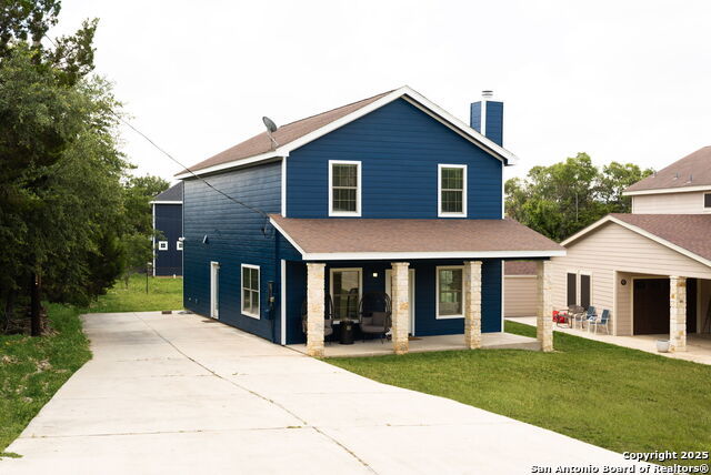 Welcome to 1526 Bonnyview Drive, an exquisite Hill Country retreat in the heart of Canyon Lake's desirable Forest community, where modern comfort meets serene natural beauty. This beautifully maintained two-story home offers over 2,100 square feet of elegant living space, featuring four spacious bedrooms, two full baths, and an open-concept design that radiates warmth and sophistication. The bright and airy main living area showcases rich tile and wood laminate flooring, soaring ceilings, and a charming corner fireplace that creates the perfect ambiance for both relaxation and entertaining. The gourmet kitchen offers granite countertops, stainless steel appliances, and an inviting breakfast bar, while the downstairs primary suite provides privacy and style with a luxurious ensuite bath and walk-in closet. Step outside to a peaceful backyard setting surrounded by mature trees and enjoy easy access to the sparkling waters of Canyon Lake, Cranes Mill Park & Marina, and the nearby golf course-all just moments from your door. Centrally located between Austin, San Antonio, and New Braunfels, this home captures the essence of elevated Hill Country living, offering an unparalleled lifestyle of comfort, convenience, and quiet sophistication.